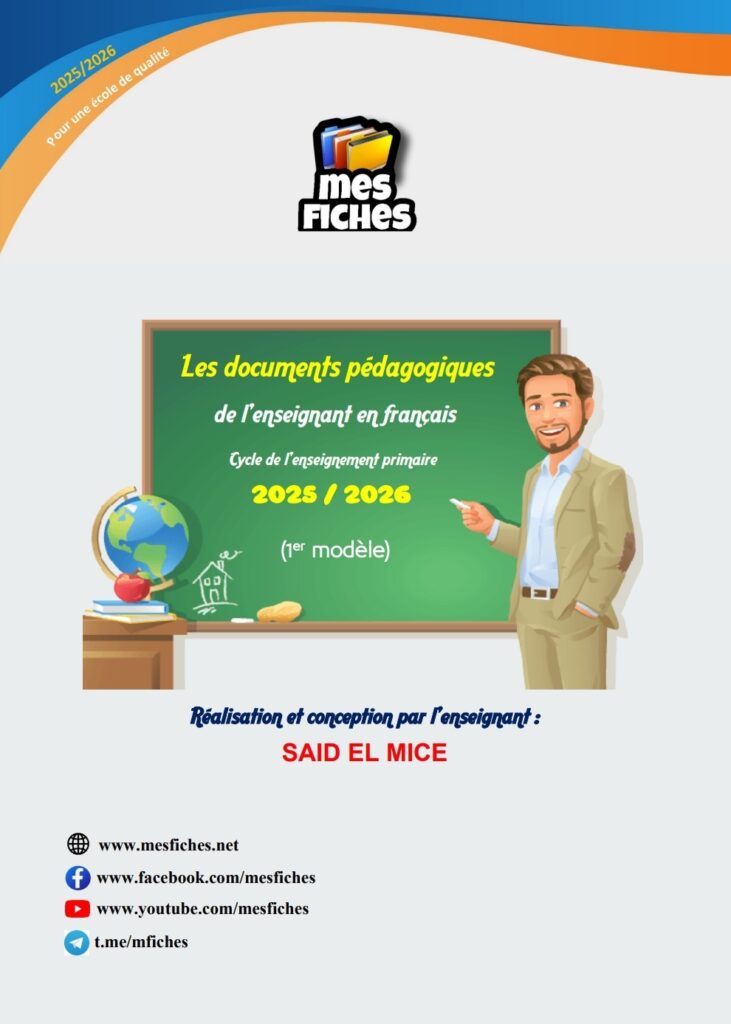 نقدم لكم متتبعينا الكرام، وثائق الأستاذ الحصرية من اعداد الموقع التربوي Mes fiches للموسم الدراسي 2025/2026 باللغة الفرنسية (نموذج 1) للقيام بالواجبات المهنية بكل احترافية.
