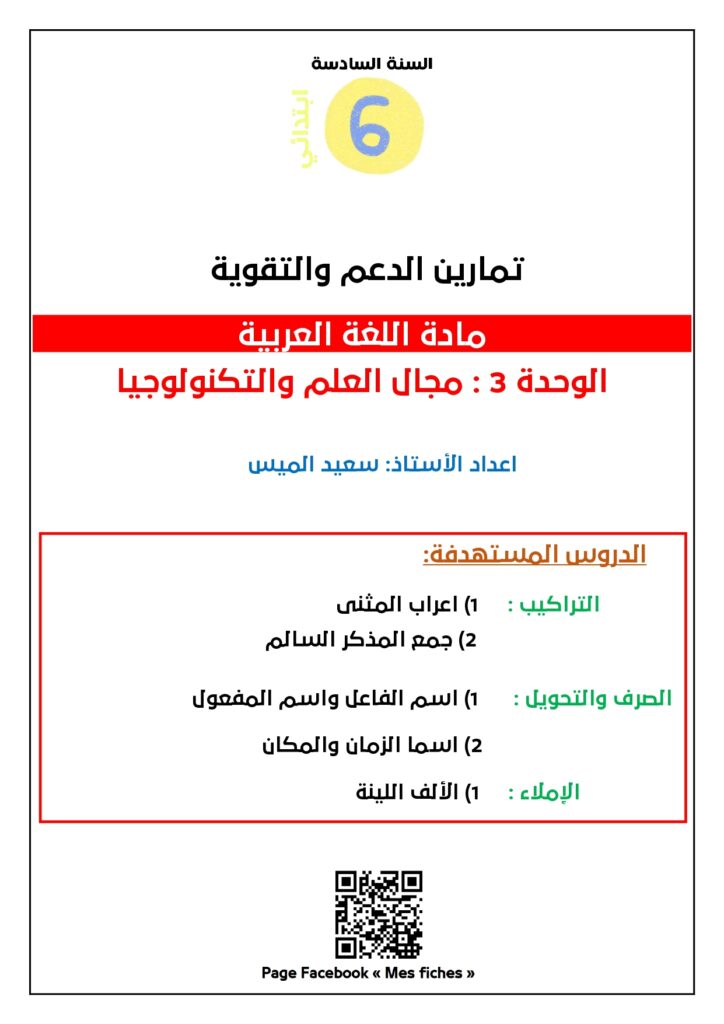 نقدم لكم تمارين الدعم والتقوية لتلاميذ المستوى السادس ابتدائي في مادة اللغة العربية، وتحديداً في دروس الوحدة الثالثة مجال “العلوم والتكنولوجيا“.
