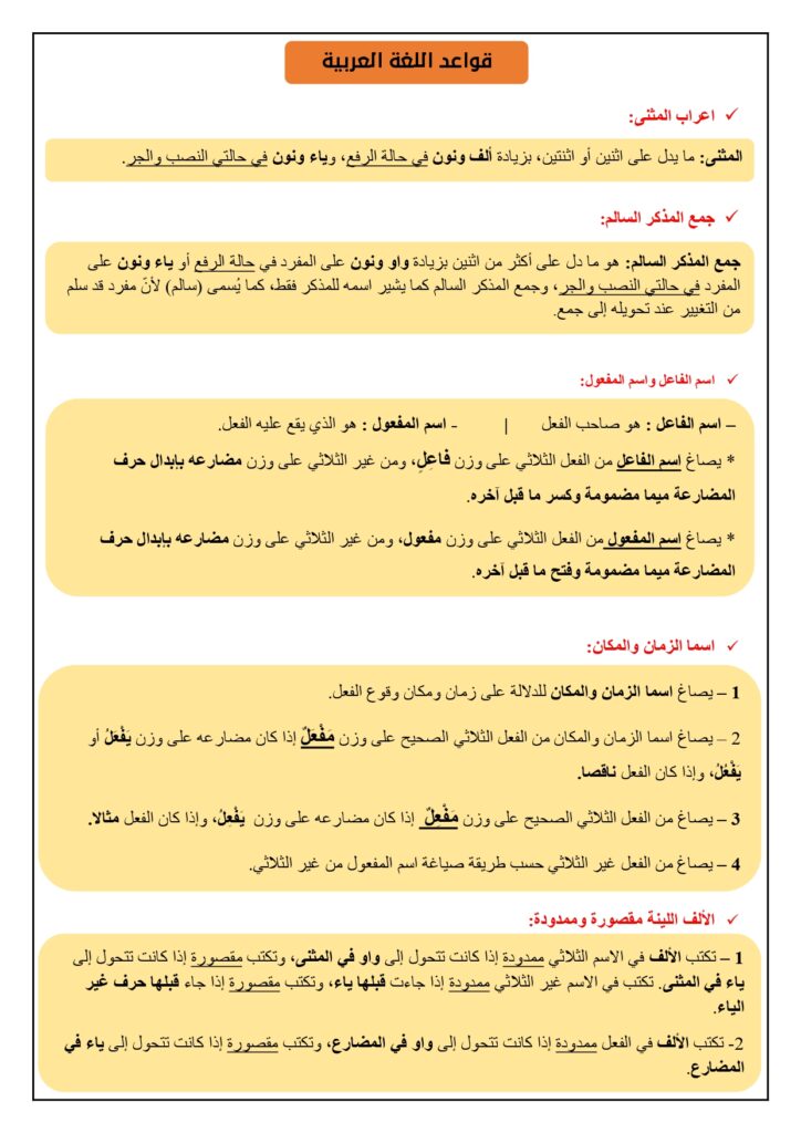 ما يميز هذه السلسلة هو تضمنها لـملخصات مركزة لقواعد اللغة العربية في نهايتها. كما توفر هذه الملخصات شرحاً مبسطاً لقواعد إعراب المثنى، وشروط صياغة جمع المذكر السالم، وطريقة اشتقاق أسماء الفاعل والمفعول والزمان والمكان، مما يجعله مرجعاً سريعاً للمراجعة قبل الامتحانات.