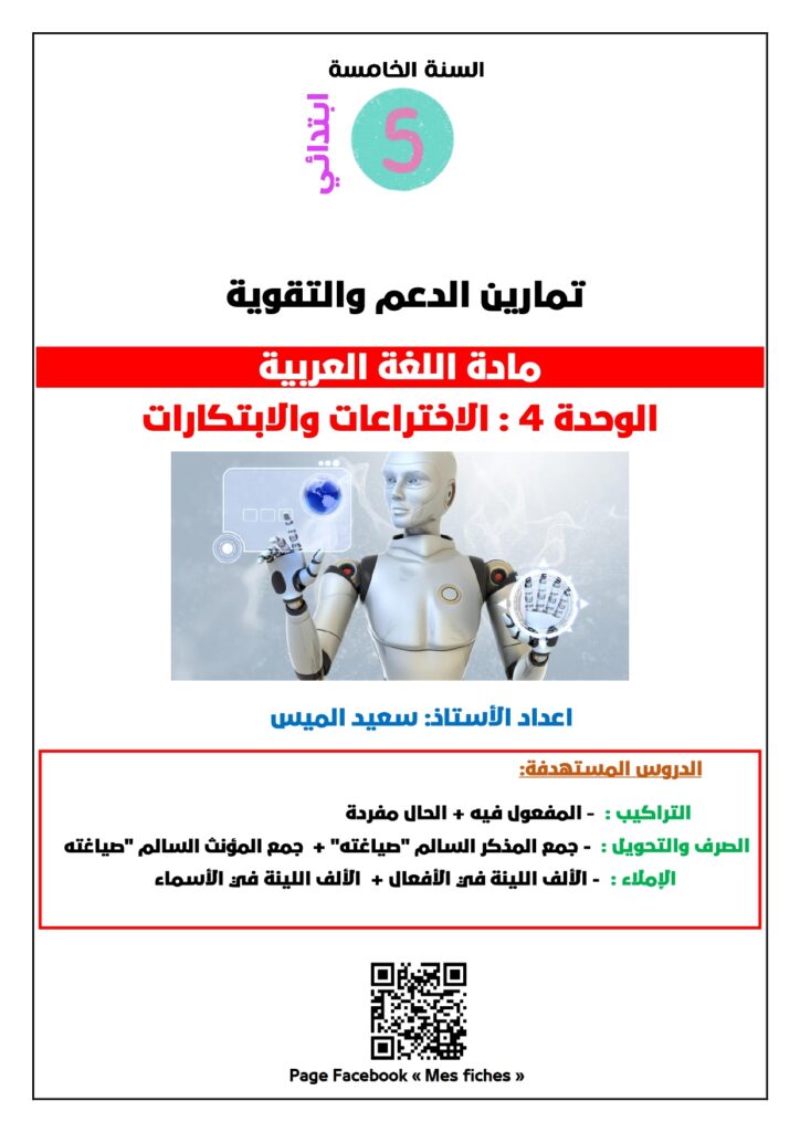 نقدم لكم تمارين الدعم والتقوية لتلاميذ المستوى الخامس ابتدائي في مادة اللغة العربية، وتحديداً في دروس الوحدة الرابعة مجال “الاختراعات والابتكارات”.